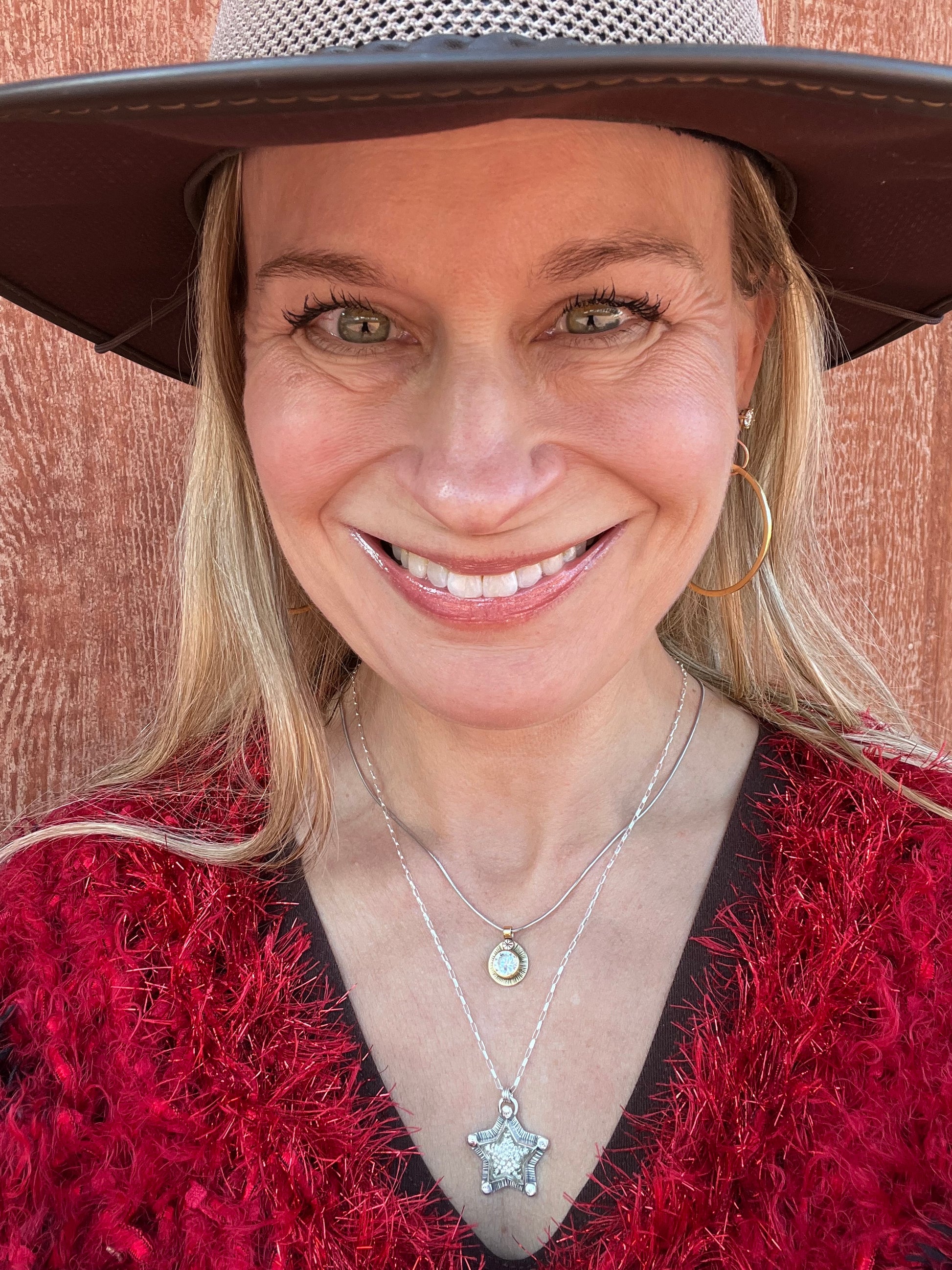1940’s vintage glass star is set in a handmade sterling silver setting. The sterling silver rolo chain is 18”.